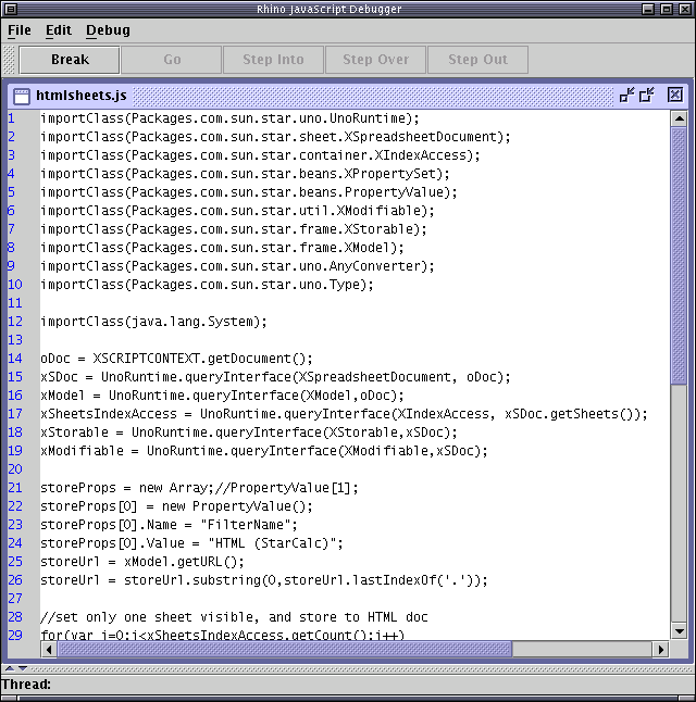 Once again you can use the Edit/Debug Scripts dialog to open a JavaScript script in an editor. The Rhino JavaScript Editor from the Mozilla Rhino project can be used to debug and test your JavaScript scripts.